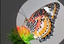 优红蛱蝶:翼展4.5-12厘米。是一种美丽的蝴蝶。色彩鲜艳,花纹相当复杂。前足相当退化,短小无爪。前翅R脉5条,常共柄。卵呈半圆球形。幼虫头上常有突起,体节上有枝刺,腹足趾钩1至3序中列式。蛹为垂蛹。全部>>
