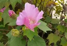 木芙蓉,锦葵科木槿属落叶灌木或小乔木。小枝上有细绒毛;叶片为卵状心形,托叶为披针形,常早落;花单生,花萼为钟形,花冠初为白色或淡红色,后逐渐变为深红色;果实为扁球形,有淡黄色的毛附着。花期8到10月。…全部>>