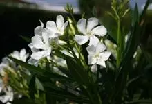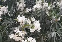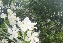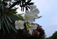 白花夹竹桃是夹竹桃科、夹竹桃属植物夹竹桃的栽培品种。常绿直立大灌木,枝条灰绿色;嫩枝条具稜,被微毛,老时毛脱落。叶3-4枚轮生,下枝为对生,叶面深绿,叶背浅绿色;侧脉纤细平行与中脉成直角;叶柄扁平,…全部>>