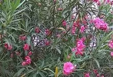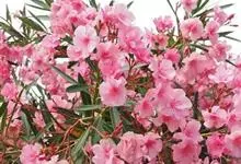 夹竹桃,又名红花夹竹桃、欧洲夹竹桃,是夹竹桃科夹竹桃属的一种常绿直立大灌木,枝条灰绿色,含水液。叶披针形,3叶轮生。聚伞花序顶生,花冠粉红至深红色,花冠漏斗状,有特殊香味。蓇葖果,圆柱形。种子长圆形,…全部>>