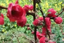 红叶碧桃是蔷薇科李属的一种落叶小乔木,是碧桃的一个变异品种。其小枝呈红褐色,单叶互生,叶片呈卵圆状披针型,在生长初期,叶子为鲜红色。花为重瓣状,呈桃红色。核果为球形,果皮周围有短的茸毛,并且内含蜜汁。…全部>>