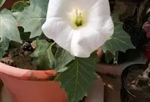 洋金花是茄科曼陀罗属植物,一年生草本植物,全株近于无毛。茎直立,圆柱形,高30~100cm,基部木质化,上部呈义状分枝。叶互生,上部的叶近于对生;叶柄长2~6cm,表面被疏短毛;叶片卵形、长卵形或心形,…全部>>