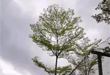 \t小叶榄仁是使君子科榄仁树属落叶乔木。主干浑圆挺直,侧枝轮生呈水平展开,树冠伞形,层次分明。叶互生,呈广椭圆形,全缘,冬季落叶。穗状花序腋生,花两性,淡绿色,花尊5裂,无花瓣。核果阔圆形,无毛。…全部>>