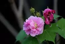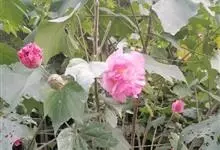 木芙蓉,锦葵科木槿属落叶灌木或小乔木。小枝上有细绒毛;叶片为卵状心形,托叶为披针形,常早落;花单生,花萼为钟形,花冠初为白色或淡红色,后逐渐变为深红色;果实为扁球形,有淡黄色的毛附着。花期8到10月。…全部>>