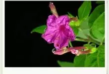 即紫茉莉,英文名:Four-o'clock,Marvel of Peru,为紫茉莉科、紫茉莉属多年生草本植物,一年生栽培。株高50~80cm。根粗壮,茎多分枝而散生。叶对生,卵形或心脏形。花数朵簇生…全部>>