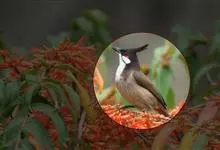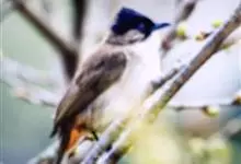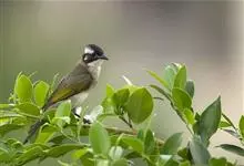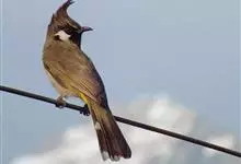 白颊鹎是雀形目鹎科鸟类。体长19—21厘米。雌雄相似。成鸟头部深灰色具一显著的羽冠,白色脸侧具一黑色点状斑纹。颏部、喉部黑色;胸部、腹部、两胁近白色;背部、两翼近灰色;尾下覆羽黄色,尾羽灰色,…全部>>