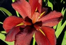燕子花是鸢尾科鸢尾属植物,多年生草本,植株基部围有棕褐色毛发状的老叶残留纤维。根状茎粗壮,斜伸,棕褐色;须根黄白色,有皱缩的横纹。叶灰绿色,剑形或宽条形。花茎实心,光滑,有2-3枚茎生叶;苞片3-5枚,…全部>>