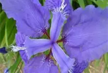 玉蝉花是鸢尾科鸢尾属的多年生草本植物,根状茎粗壮,斜伸;叶线形,中脉明显,长可达80厘米,宽约1厘米;花深紫色,直径约10厘米,花被管漏斗形,外花被裂片倒卵形,爪部细长,中央下陷呈沟状,…全部>>