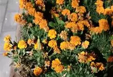 万寿菊是菊科万寿菊属一年生草本植物,别名孔雀菊、缎子花、臭菊花、西番菊、红黄草、小万寿菊、臭芙蓉、孔雀草。万寿菊茎近基部分枝。叶羽状分裂,长5-10厘米,宽4-8厘米,裂片长椭圆形或披针形,具锐齿,…全部>>