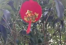 翅果刺桐 Merr.)是豆科,刺桐属乔木,高12-15米,具粗壮的刺。羽状复叶具3小叶,小叶膜质,卵状三角形,先端短渐尖,基部圆或宽楔形,两面无毛;总状花序长7-10厘米,有褐色绒毛;花红色,花萼钟状,…全部>>