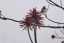 鸡冠刺桐是豆科、刺桐属落叶灌木或小乔木,茎和叶柄稍具皮刺。羽状复叶具3小叶;小叶长卵形或披针状长椭圆形,花与叶同出,总状花序顶生,每节有花1-3朵;花深红色,荚果长约15厘米,褐色,种子间缢缩;种子大,…全部>>