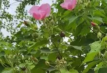 木芙蓉,锦葵科木槿属落叶灌木或小乔木。小枝上有细绒毛;叶片为卵状心形,托叶为披针形,常早落;花单生,花萼为钟形,花冠初为白色或淡红色,后逐渐变为深红色;果实为扁球形,有淡黄色的毛附着。花期8到10月。…全部>>