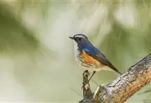 红胁蓝尾鸲俗名:蓝点冈子、蓝尾巴根子、蓝尾杰、蓝尾欧鸲。体型略小而喉白的鸲。特征为橘黄色两胁与白色腹部及臀成对比。雄鸟上体蓝色,眉纹白;亚成鸟及雌鸟褐色,尾蓝。…全部>>