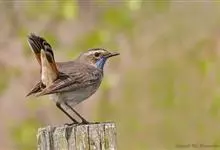 蓝点颏亦称“蓝喉歌鸲”,通称蓝靛颏儿。身体大小和麻雀相似,体长12-13厘米,体重17-18克。头部、上体主要为土褐色。眉纹白色。尾羽黑褐色,基部栗红色。颏部、喉部辉蓝色,下面有黑色横纹。下体白色。…全部>>