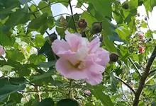 木芙蓉,锦葵科木槿属落叶灌木或小乔木。小枝上有细绒毛;叶片为卵状心形,托叶为披针形,常早落;花单生,花萼为钟形,花冠初为白色或淡红色,后逐渐变为深红色;果实为扁球形,有淡黄色的毛附着。花期8到10月。…全部>>