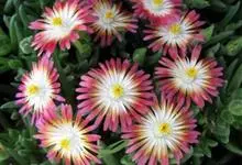 冰叶日中花,是番杏科日中花属的一年生或二年生草本植物。叶互生,卵形或长匙形,基部近心形,抱茎,边缘波状;花淡玫瑰红或带白色,近无梗。冰叶日中花在嫩绿色的叶面和嫩茎上长着密密麻麻的透明囊状细胞,…全部>>