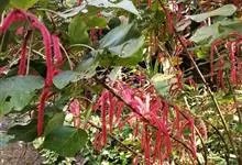 红穗铁苋菜:为大戟科、铁苋菜属植物,灌木,高0.5-3米。嫩枝被灰色短绒毛,毛逐渐脱落,小枝无毛。 花序色泽鲜艳,葇荑花序下垂,如狐狸尾状,雌花近卵形,长约0.8毫米,顶端急尖,具短毛;子房近球形,…全部>>