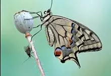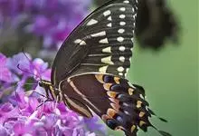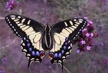 金凤蝶,是鳞翅目凤蝶科凤蝶属动物。金凤蝶为中型凤蝶,翅展70-84毫米,翅背面底色黑褐色,翅脉黑色,翅室具黄斑;前翅背面基部呈暗黄色,亚外缘为黑色,内具一列小黄斑;后翅背面亚外缘区具黑宽边,…全部>>