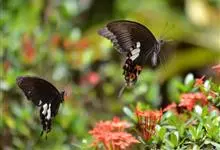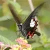 玉斑凤蝶Papilio helenus 别名白纹凤蝶,是凤蝶科凤蝶属美凤蝶亚属大型种类。雌雄同型;体翅皆黑色,后翅正面中室外有3个并列的白色斑,亚外缘有1列模糊的新月形红色斑,…全部>>