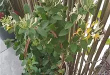 山银花在华南地区野外山林生长。木质藤本,长2~5m。树皮黄褐色渐次变为白色,嫩时有短柔毛。叶对生,卵圆形至椭圆形,长4~8cm,宽3.5~5cm,上面绿色,主脉上有短疏毛,下面带灰白色,密生白色短柔…全部>>