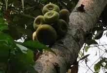 大果榕是桑科榕属的小乔木,株高可达10米;幼枝被柔毛;叶互生,宽卵状心形或近圆形;雄花无梗、匙形、花丝长,雌花生于雌株榕果内,子房白色;榕果簇生于树干基部或老茎短枝上、扁球形或陀螺形,…全部>>