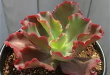 女王花笠,又名扇贝石莲花、女王花舞笠,是景天科拟石莲花属的多肉植物。由美国加利福尼亚州的育种师Dick Wright于1964年培育。特征是呈大波浪状褶皱的红色叶缘和气质高贵的粉紫色调。…全部>>
