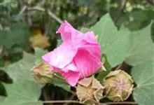 木芙蓉,锦葵科木槿属落叶灌木或小乔木。小枝上有细绒毛;叶片为卵状心形,托叶为披针形,常早落;花单生,花萼为钟形,花冠初为白色或淡红色,后逐渐变为深红色;果实为扁球形,有淡黄色的毛附着。花期8到10月。…全部>>