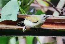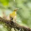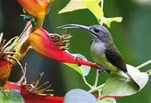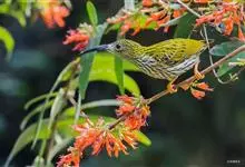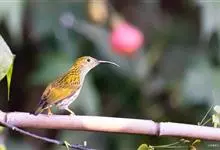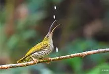 纹背捕蛛鸟:为太阳鸟科捕蛛鸟属的鸟类。是太阳鸟科中体型较大的一种,体重25-45克,体长160-210毫米。嘴粗长而尖且向下弯曲。上体橄榄黄色具黑色中央斑纹。下体淡黄白色满布黑色纵纹,尾具黑色次端斑。…全部>>