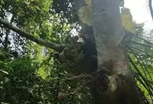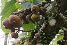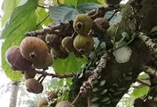 大果榕是桑科榕属的小乔木,株高可达10米;幼枝被柔毛;叶互生,宽卵状心形或近圆形;雄花无梗、匙形、花丝长,雌花生于雌株榕果内,子房白色;榕果簇生于树干基部或老茎短枝上、扁球形或陀螺形,…全部>>
