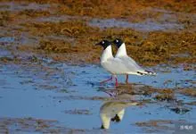 剪嘴鸥:是鸟纲、剪嘴鸥科的中型水鸟,体长40-43厘米。嘴粗,长而侧扁,基部较宽。下嘴较上嘴显著为长。嘴的颜色为橙红色,尖端黄色,脚短,红色。头顶至枕黑色。嘴基、颊、后颈和整个下体白色,上体和翅黑褐色,…全部>>