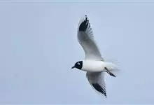 黑嘴鸥 中型水鸟,体长31~39厘米。嘴黑色,脚红色。夏羽头黑色,眼上和眼 下具白色星月形斑,在黑色的头上极为醒目。颈、腰、尾上覆羽、尾和下体白色。初级飞羽末端具黑色斑点。翼下仅部分初级飞羽黑色,与…全部>>