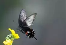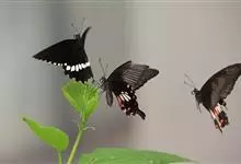 玉斑凤蝶Papilio helenus 别名白纹凤蝶,是凤蝶科凤蝶属美凤蝶亚属大型种类。雌雄同型;体翅皆黑色,后翅正面中室外有3个并列的白色斑,亚外缘有1列模糊的新月形红色斑,…全部>>