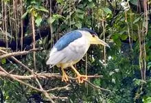 夜鹭是中型涉禽,体长46-60厘米。体较粗胖,颈较短;嘴尖细,微向下曲,黑色;胫裸出部分较少,脚和趾黄色;头顶至背黑绿色而具金属光泽;上体余部灰色;下体白色;枕部披有2-3枚长带状白色饰羽,下垂至背上,…全部>>