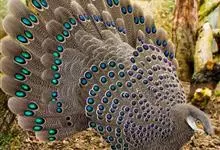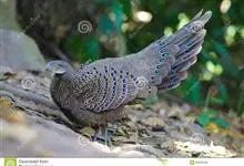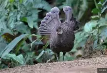 灰孔雀雉:雄鸟体长50-67厘米,体重456-710克;雌鸟体长33-52厘米,体重460-500克。雄鸟全身羽毛黑褐色,…全部>>