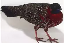 黑长尾雉大型鸡类,体长53~88厘米。雄较雌大。雄鸟通体紫蓝色,脸鲜红色,翅上有一条显著的白色翅斑,尾甚长,黑色,具显著的白色横斑,脚绿褐色。雌鸟通体橄榄褐色,脸红色,背和翅满布棕褐色斑纹和灰白色羽…全部>>