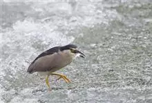 夜鹭是中型涉禽,体长46-60厘米。体较粗胖,颈较短;嘴尖细,微向下曲,黑色;胫裸出部分较少,脚和趾黄色;头顶至背黑绿色而具金属光泽;上体余部灰色;下体白色;枕部披有2-3枚长带状白色饰羽,下垂至背上,…全部>>