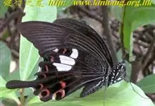 玉斑凤蝶Papilio helenus 别名白纹凤蝶,是凤蝶科凤蝶属美凤蝶亚属大型种类。雌雄同型;体翅皆黑色,后翅正面中室外有3个并列的白色斑,亚外缘有1列模糊的新月形红色斑,…全部>>