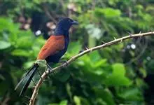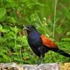褐翅鸦鹃,是鹃形目鸦鹃科鸦鹃属的鸟类。褐翅鸦鹃的身体为黑色;头颈和胸带蓝紫色金属光泽并具黑亮的羽干纹,下胸至腹部泛金属绿光泽;两翼和肩部为棕栗色,外侧飞羽具暗色羽端,尾羽闪铜绿色光泽;虹膜赤红色,…全部>>