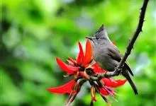 栗耳凤鹛,雌雄羽色相似。额、头顶至枕灰色,头顶有一短的不甚明显的羽冠,系由头顶羽毛向后延长形成、灰色具细的白色羽干纹,眼先灰色,眉纹白色不甚明显,其上有时杂有褐斑,…全部>>