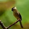 纹喉凤鹛:小型鸟类,体长13-16厘米。头顶和羽冠暗褐色或褐灰色,上体橄榄褐色,飞羽黑褐色,外侧次级飞羽表面橙黄色,构成一块纵形翼斑,极为醒目。颏、喉淡棕白色,具黑色纵纹,腹和尾下覆羽橙黄色。…全部>>