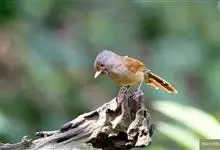 栗额斑翅鹛是噪眉科、斑翅鹛属中型鸟类,体长20-23厘米。头顶具浓密的羽冠,前额栗棕色,头顶灰褐色。上体棕褐色,两翅棕褐色具黑色横斑,翅基外缘有一黑斑,尾呈凸状,棕褐色具黑色横斑。下体棕褐色,…全部>>