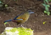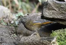 蓝翅噪鹛:噪鹛科、彩翼噪鹛属动物。中型鸟类,体长22-25厘米。上体棕橄榄褐色密被黑色鳞状斑,眼蓝白色,眼上有一长而宽阔的黑色眉纹,从眼先直到颈侧。下体棕褐色被黑色鳞状斑;尾上和尾上覆羽栗色,…全部>>