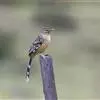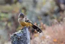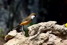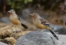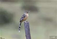 大噪鹛:中型鸟类,体长32-36厘米。额至头顶黑褐色,背栗褐色满杂以白色斑点,斑点前缘或四周还围有黑色。初级覆羽、大覆羽和初级飞羽具白色端斑。尾特长,均具黑色亚端斑和白色端斑。颏、喉棕褐色,…全部>>