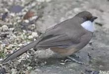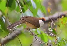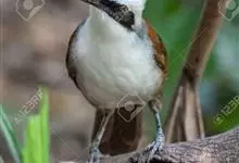 白喉噪鹛中型鸟类,体长26~30厘米。前额或整个头顶棕栗色,其余上体橄榄褐色。颏、喉白色,胸具橄榄褐色横带,腹辉棕色或棕白色。外侧四对尾羽具宽阔的白色端斑。指名亚种的额呈棕色,…全部>>