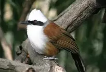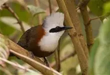 白冠噪鹛是画眉科噪鹛属的鸟类。是中型鸟类,体长28-32厘米。常见于常绿阔叶林、杂有竹丛的树林以及林下灌丛。该物种的模式产地在喜马拉雅山脉西部。主要以金龟甲、步行虫、甲虫、蝉、鳞翅目幼虫等昆虫为食,…全部>>