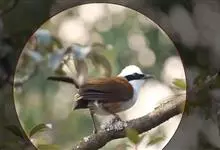 栗颈噪鹛是噪眉科、噪鹛属中型鸟类,体长22-25厘米。头顶至枕暗石板灰色,前额、头侧、颏、喉至上胸黑色,耳后至颈侧有一栗棕色块斑,在头后颈侧极为醒目。上体暗橄榄褐色,两翅黑褐色,初级飞羽外翈沾灰。…全部>>