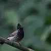白颊鹎是雀形目鹎科鸟类。体长19—21厘米。雌雄相似。成鸟头部深灰色具一显著的羽冠,白色脸侧具一黑色点状斑纹。颏部、喉部黑色;胸部、腹部、两胁近白色;背部、两翼近灰色;尾下覆羽黄色,尾羽灰色,…全部>>