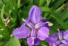 鸢尾,又名老鸹蒜、蛤蟆七、扁竹花、紫蝴蝶、蓝蝴蝶、屋顶鸢尾等,是鸢尾科鸢尾属一种多年生草本植物。鸢尾根状茎粗壮,二歧分枝;叶基生,黄绿色,宽剑形;花茎光滑,苞片2-3枚,绿色,草质,边缘膜质,色淡,…全部>>