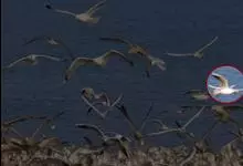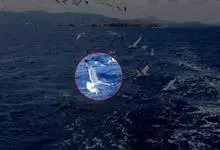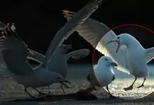 灰背鸥大型水鸟,体长62~69厘米。嘴直,黄色,下嘴先端有红色斑。脚粉红色,头、颈和下体白色,背、肩和翅黑灰色,腰,尾上覆羽和尾白色。冬季头和上胸有褐色纵纹,特别是眼周和后枕较密。飞翔时翅前后缘白色…全部>>