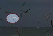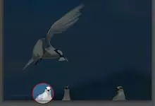 鸥嘴噪鸥,中型水禽,体长31~39厘米。夏羽额、头顶、枕和头的两侧从眼和耳羽以上黑色。背、肩、腰和翅上覆羽珠灰色。后颈、尾上覆羽和尾白色,中央一对尾羽珠灰色。尾呈深叉状。冬羽头白色,头顶和枕缀有灰色…全部>>